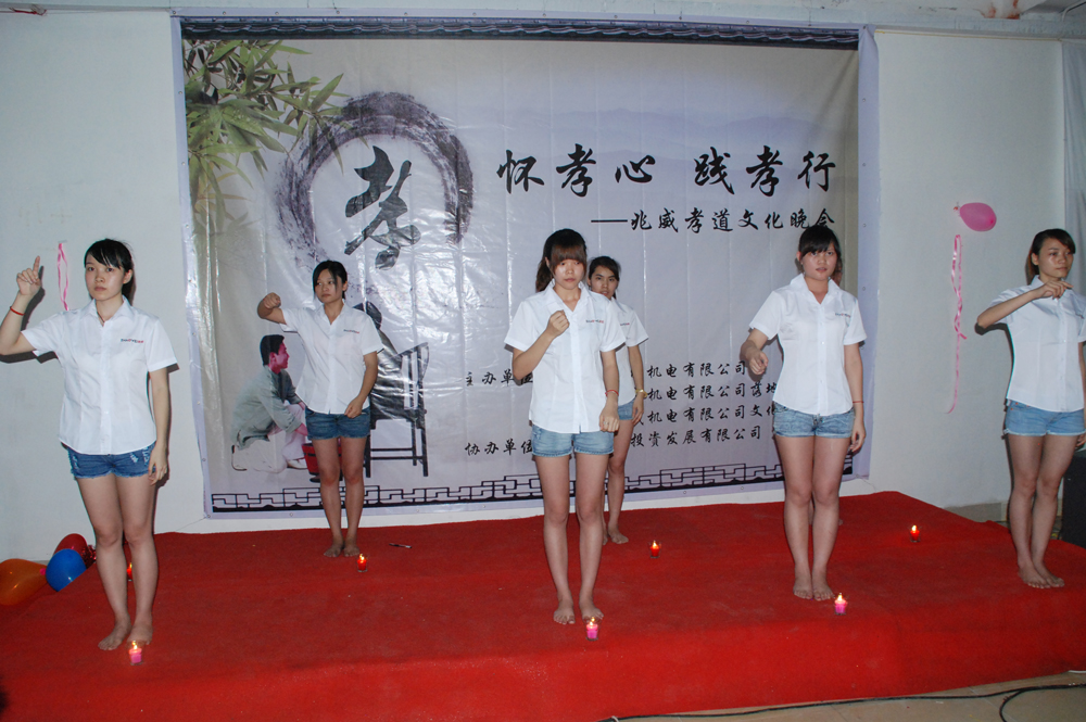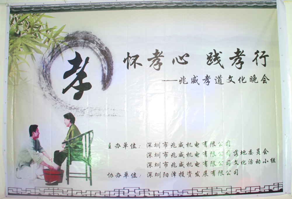 傳揚中華民族傳統(tǒng)是每個公民每個企業(yè)都不能推卸的責任,傳承孝文化是迫不及待的。對于企業(yè)說,把孝做為企業(yè)文化是必要的社會責任。兆威機電自成立來,一直把“孝道”作為企業(yè)文化,并且把孝引入每個員工的心里,提自身素質。孝順父母自古以來都是中華民族的傳統(tǒng)美德,盡孝不僅要有心,更要化作實際行動。